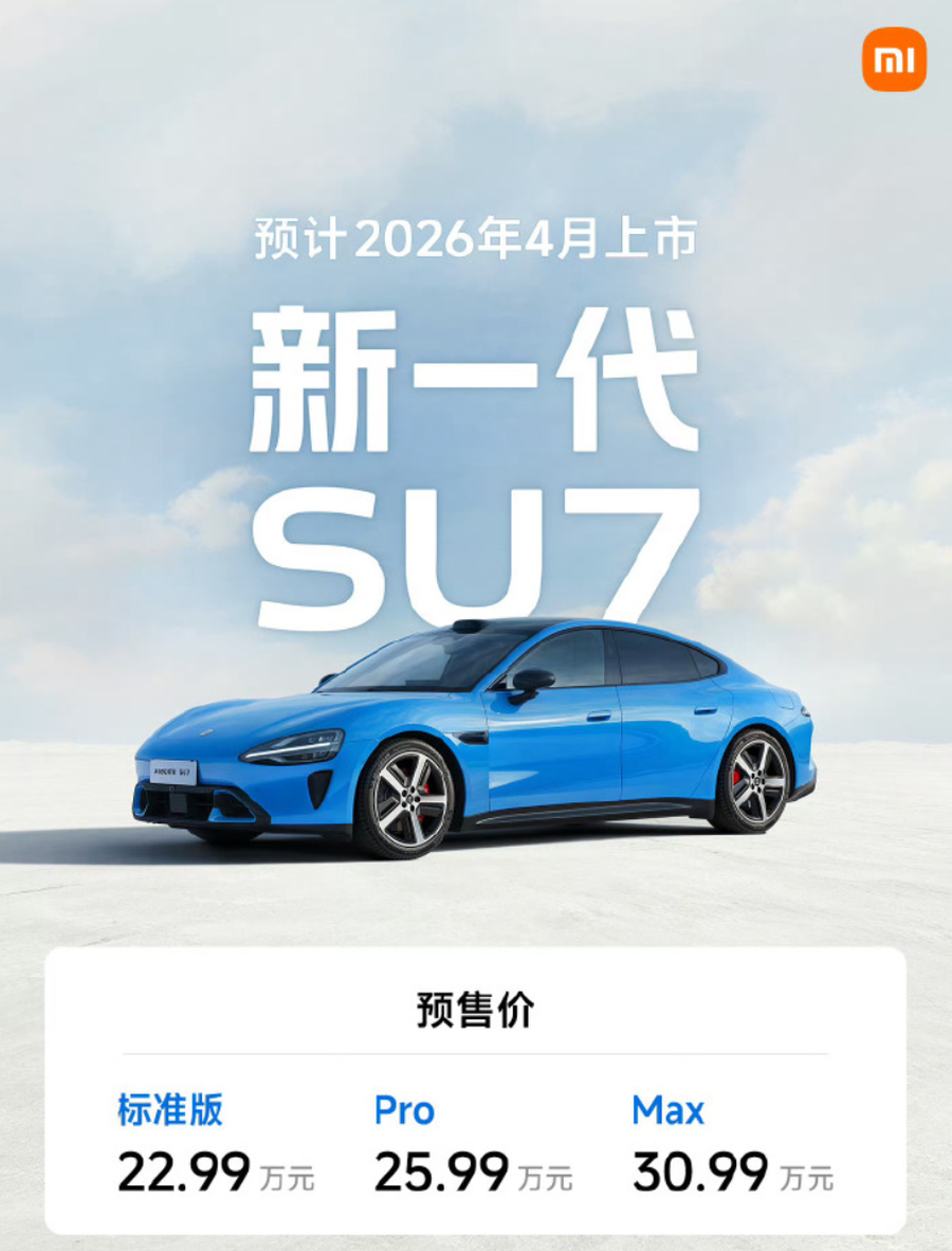 值得注意的是,雷军此前已多次透露新一代SU7将会涨价,因为成本大幅提升。此次新车同样提供标准、Pro、Max三个版本,预售价分别为22.99万元、25.99万元和30.99万元。作为对比,老款小米SU7三个版本的上市价格分别为21.59万元、24.59万元和29.99万元,新款整体价格有所上涨。
