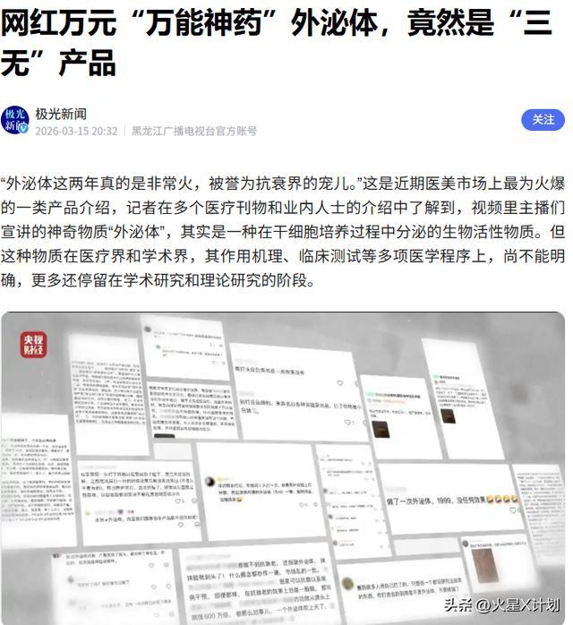 如果说鸡爪是乱吃,那往脸上和身上打的针剂,可就关乎性命了,近年来,“外泌体”在医美界被捧为“抗衰宠儿”,价格动辄数万元。